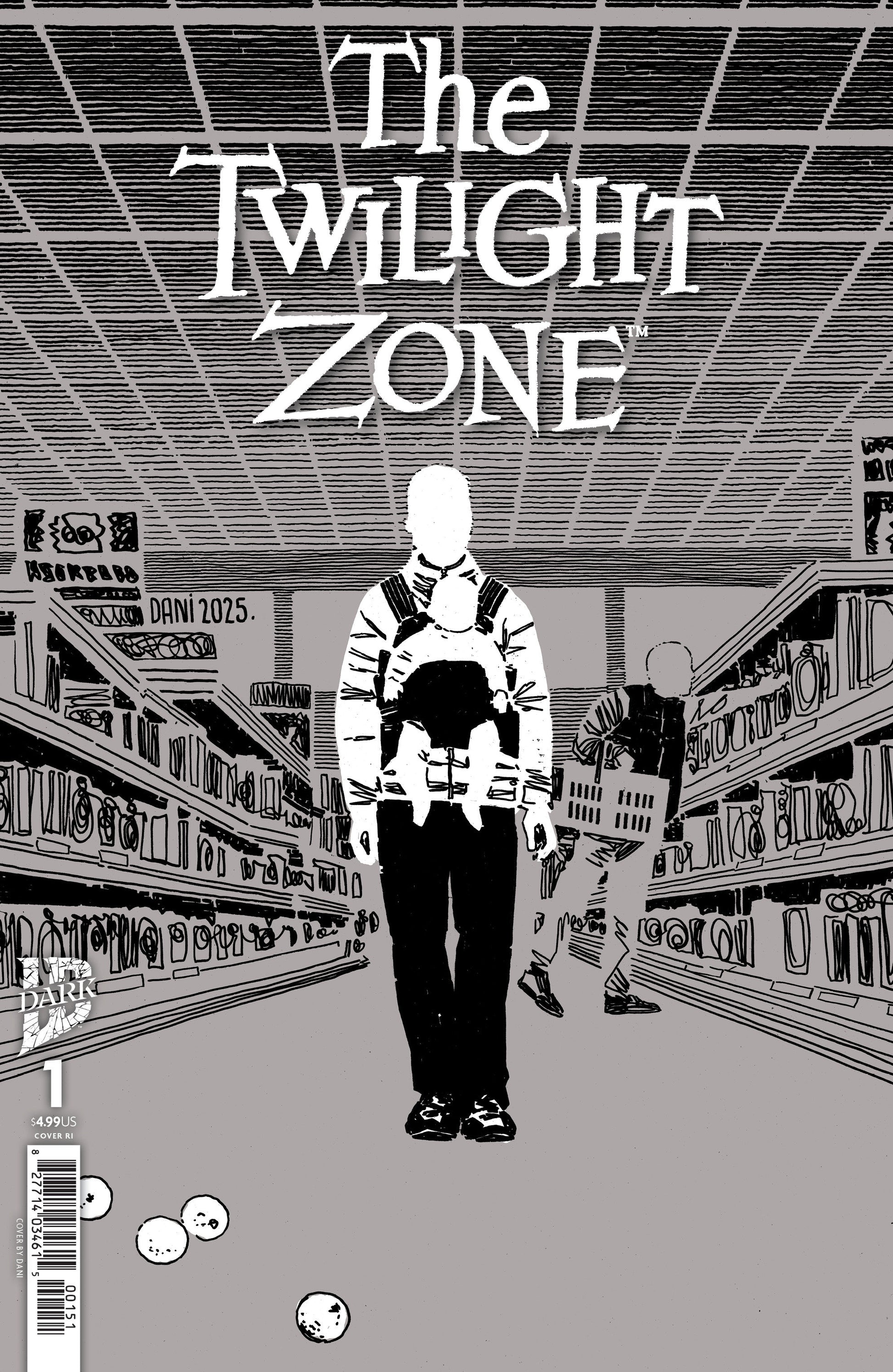 Return to the Twilight Zone in this all-new anthology series featuring stories by some of the best creators in comics today! Each issue is a new tale in the vein of the iconic original television series that’s captivated audiences for over 60 years. And like the show, these stories will be revealed in terrifying black and white!THIS ISSUE: Writer Dan Watters (Batman: Dark Patterns, Home Sick Pilots) and artist Morgan Beam (Swamp Thing: Twin Branches) present “Blank.” A terrified citizen regales a detective with a story about people suddenly frozen like statues. A once-bustling metropolis becomes quieter by the minute as people are replaced by featureless versions of themselves. Where one would have found hopes, laughter, tears, and struggles, one can now only find BLANKS…here in The Twilight Zone.