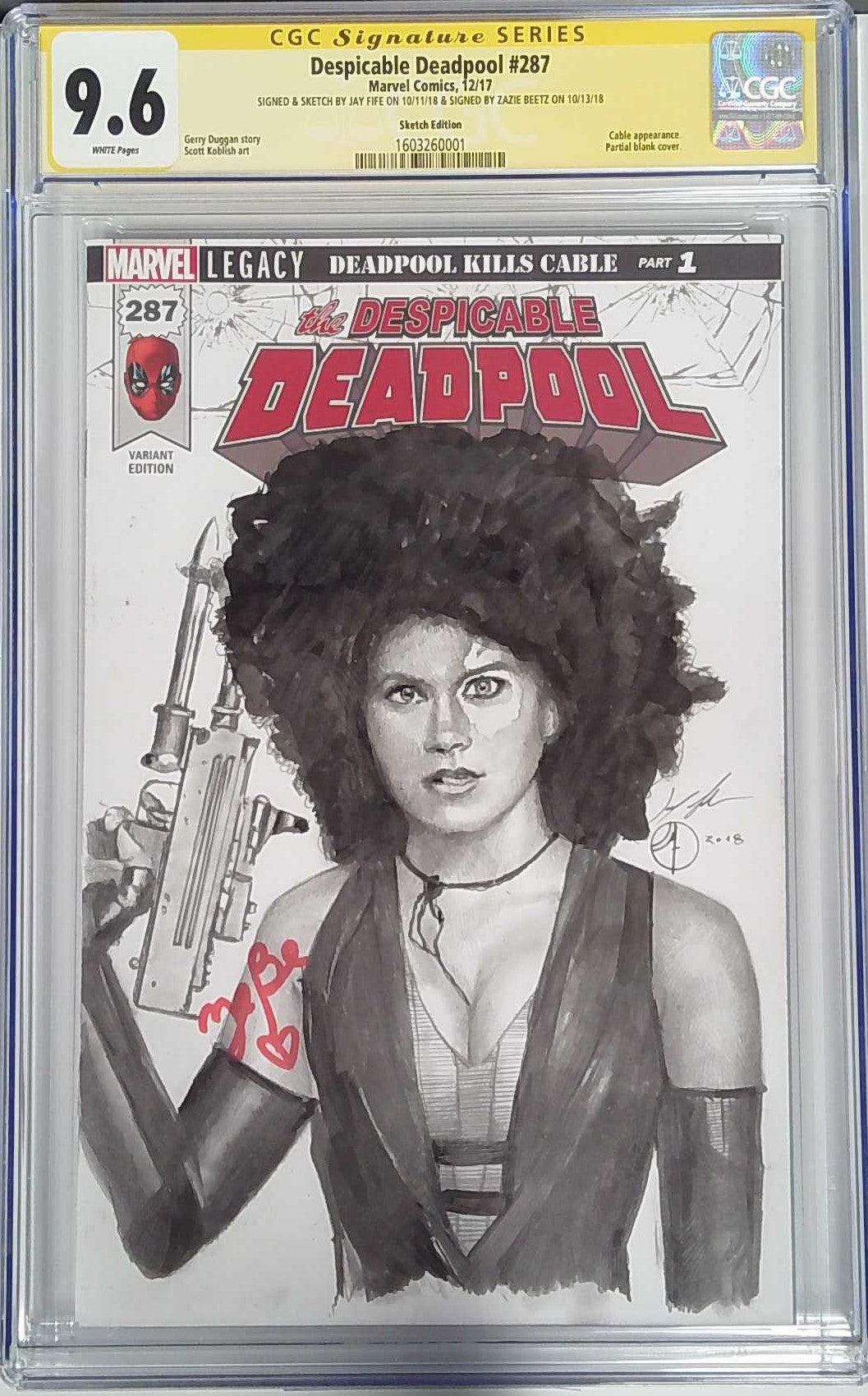 Signed & Sketch by Jay Fife on 10/11/2018 & Signed by Zazie Beetz on 10/13/2018