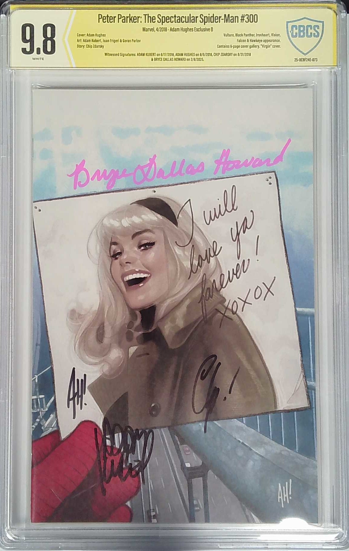 Witnessed Sigs: Adam Kubert on 6/17/2018, Adam Hughes on 8/6/2018, Chip Zdarsky on 8/31/2018, & Bryce Dallas Howard on 2/8/2025